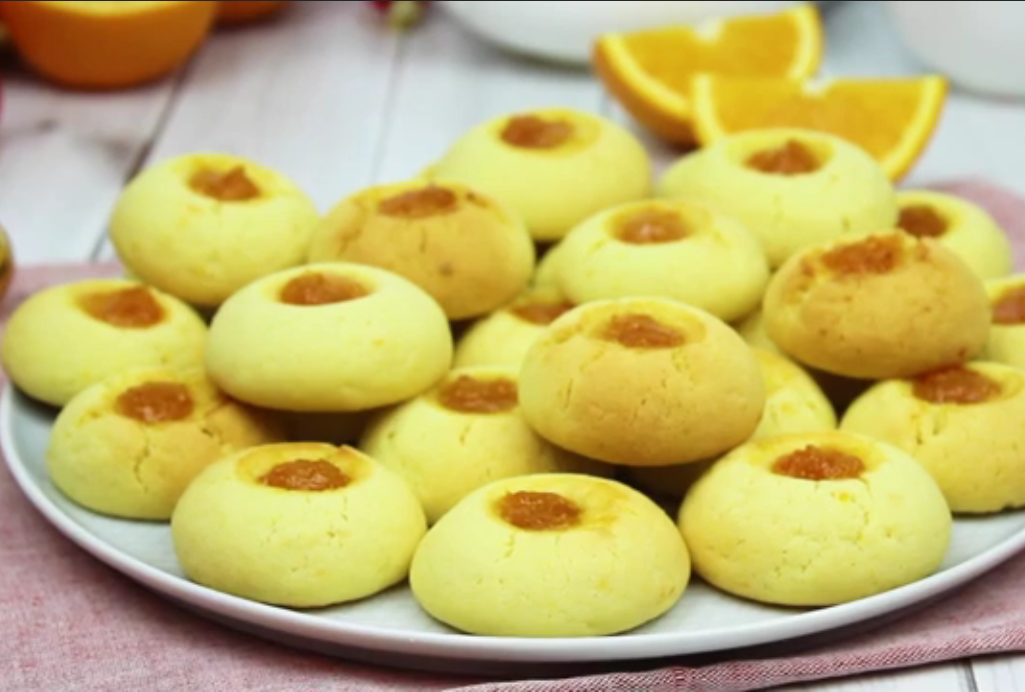 Для новогоднего стола предлагаем еще один рецепт вкусной выпечки – очень нежное, мягкое, ароматное апельсиновое печенье с джемом. Рецепт очень простой, готовится все быстро.