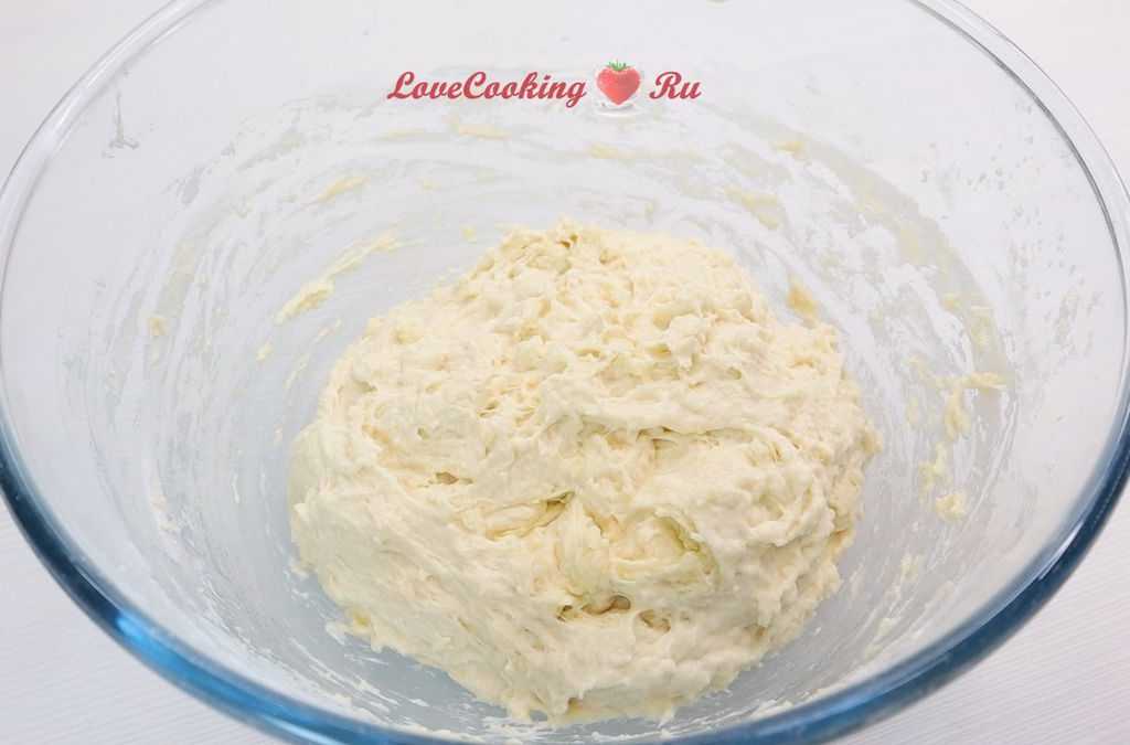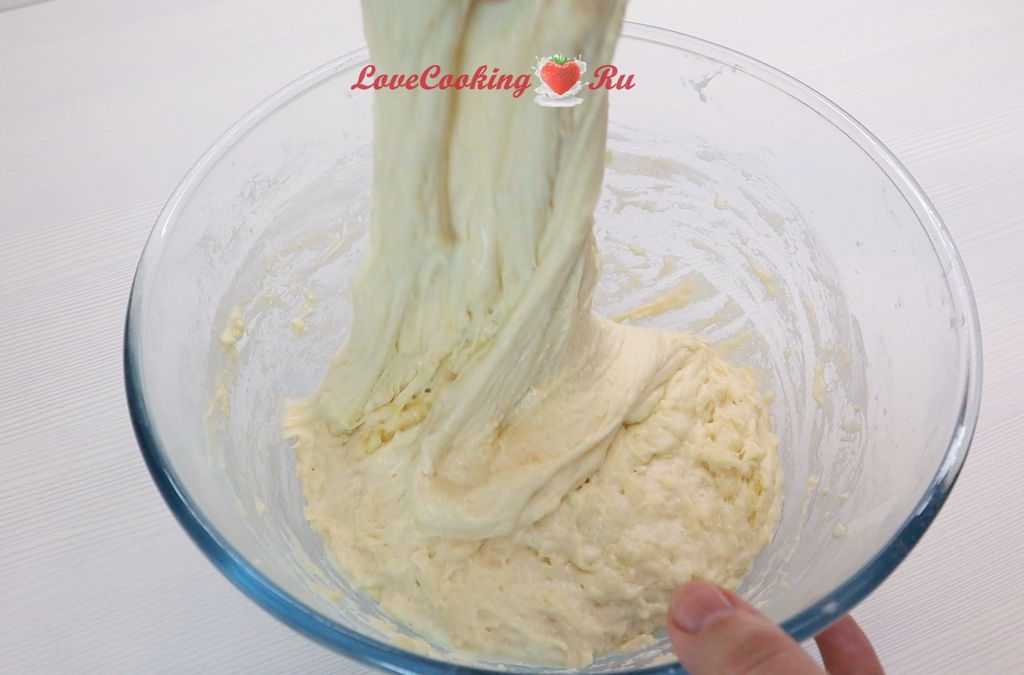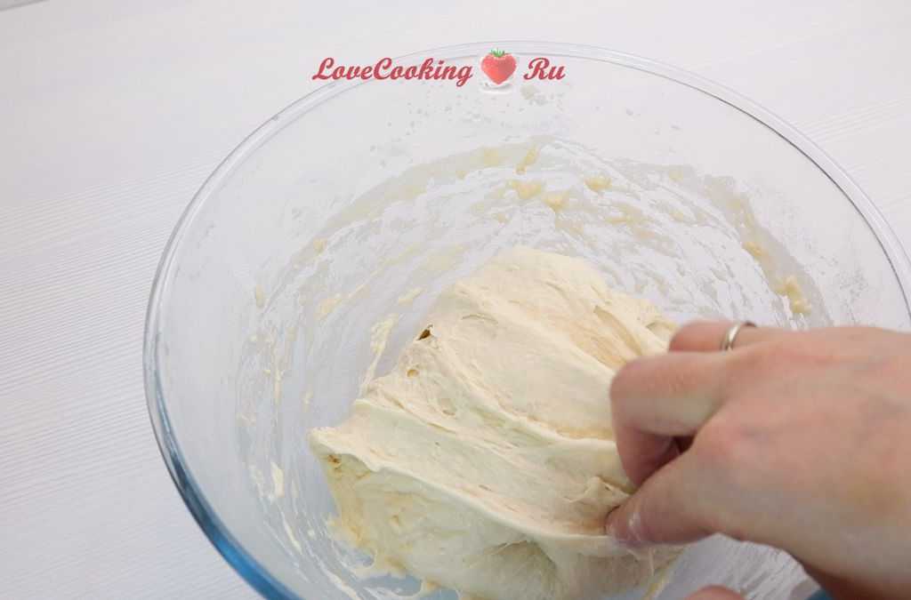 - Перемешивание продолжать, пока тесто не станет достаточно плотным, и не будет отставать от рук.