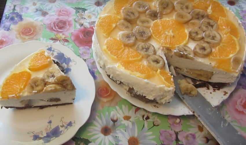 Самый популярный рецепт, в котором основой выступает песочное печенье, а фруктовым дополнением являются спелые бананы. Если вы еще ни разу не имели дело с желатином, тогда это ваш рецепт. Подробное пошаговое описание поможет справиться с кулинарной задачей даже новичкам – нежный легкий десерт получится с первого раза.
