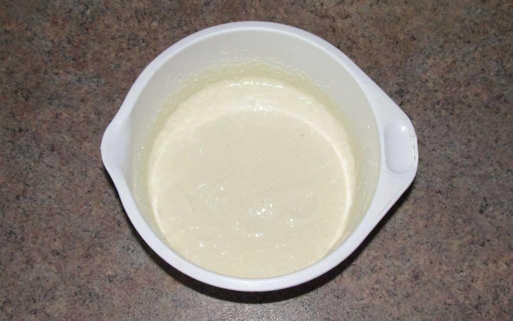 Поэтому сразу выложить кисломолочный продукт в большую миску, где будет удобно сбивать смесь и замешивать тесто.