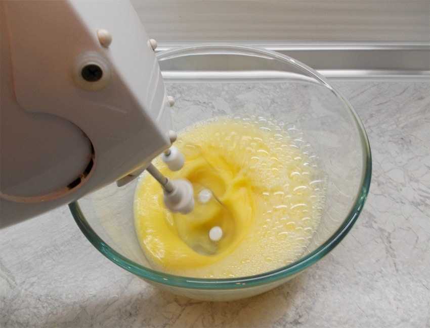 Желток взбейте миксером около 2 минут до воздушности и осветления жидкости. Влейте взбитый желток в тесто и вмешайте.