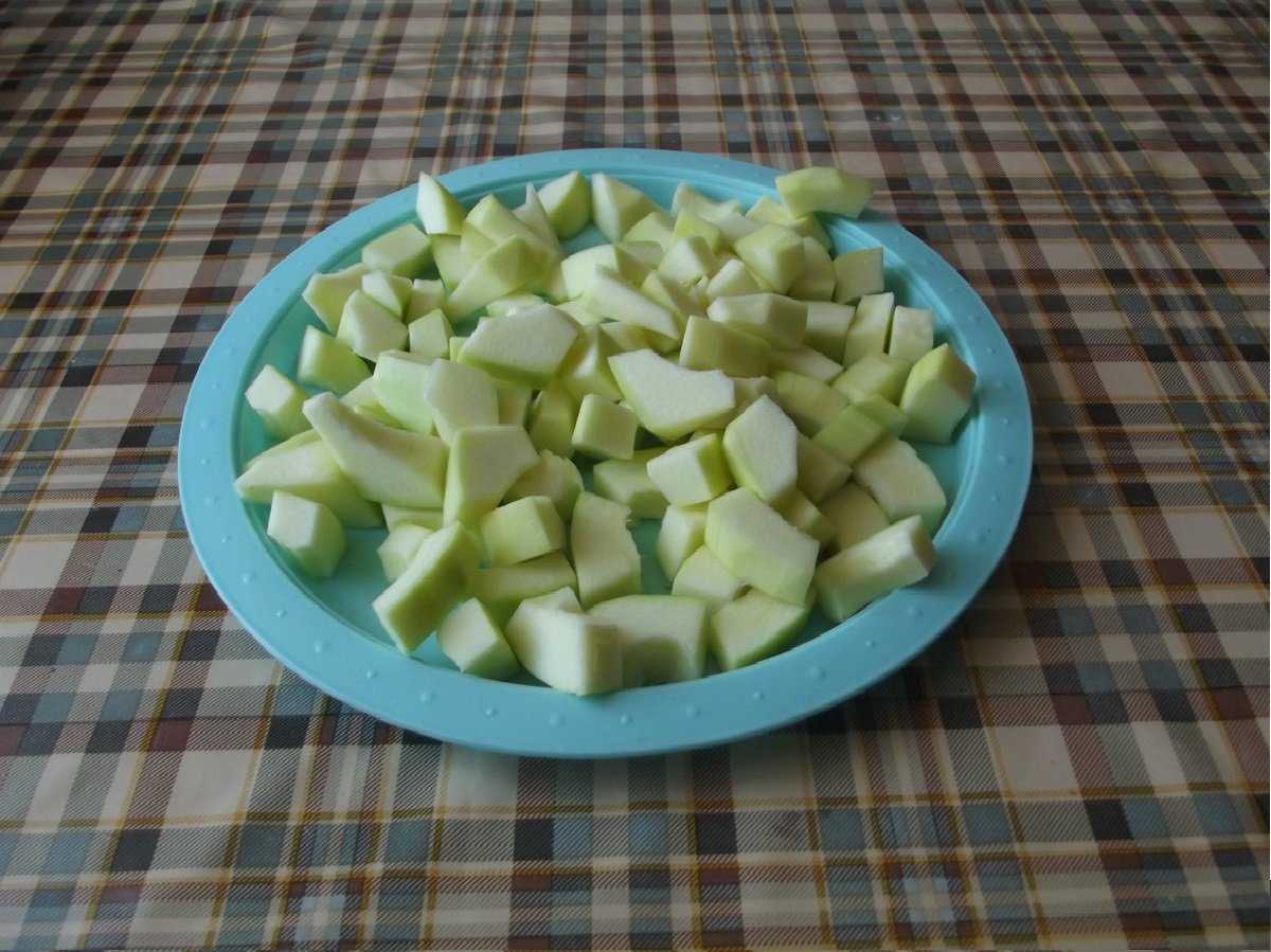 2. Яблоки чистим и удаляем сердцевину. Шинкуем мелкими кусочками.
