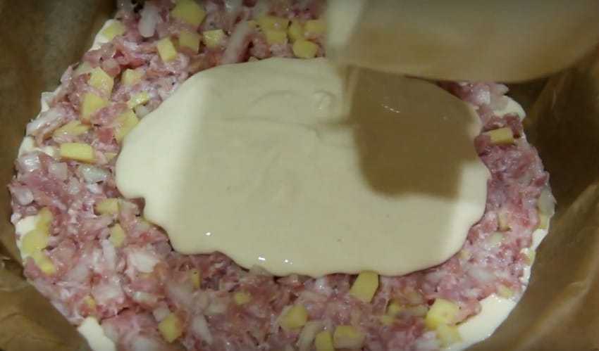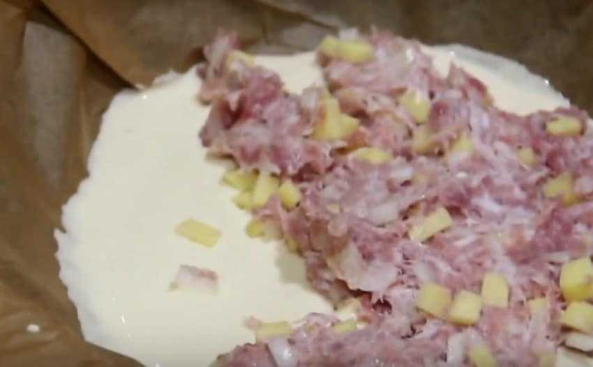 Рецепт заливного пирога с сырым фаршем и картошкой на кефире
