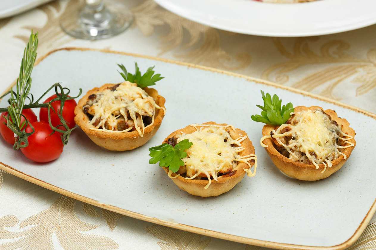 Подача жульена с грибами и курицей в классическом варианте происходит в кокотницах, но иногда даже в ресторанах подают это блюдо в съедобных формочках – в тарталетках, как это предлагаем мы в нашем рецепте с фото. Нежный сметанный соус подчеркнет аромат, сочность и вкус основных ингредиентов.