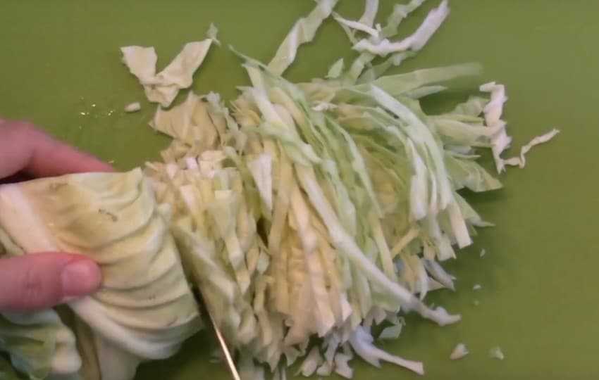- Нашинковать капусту соломкой, морковь натереть, нарезать полукольцами лук.