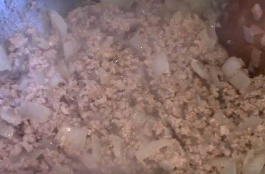 - Добавить лук, порезанный перышками (полукольцами). Жарить до полупрозрачного состояния.