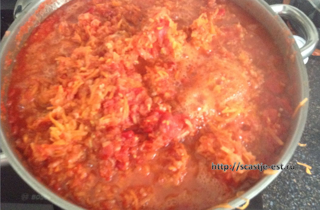 2. Измельченные овощи складываем в большую кастрюлю, доводим до кипения и тушим около 1 часа.