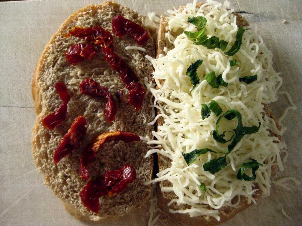 Эти брускетты предполагают использование оливкового масла и твердого сыра. Бутерброды получатся более сытными.