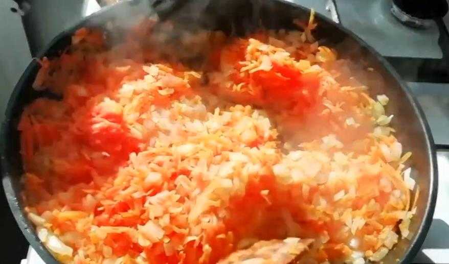 Затем отправить их к овощам в кастрюлю. Последний этап обжарки на сковороде с добавлением масла — томаты.