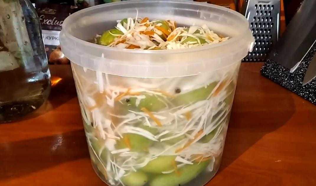 Интересную закуску можно приготовить, если соединить капусту с зелеными помидорами. Приготовить консервацию достаточно просто, потому что овощи заливаются рассолом одновременно. Заготовка популярна, поскольку дополнительно подготавливать составляющие не придется, что сэкономит время. До того, как купить квашеную капусту, нужно попробовать приготовить ее собственноручно по этому рецепту.