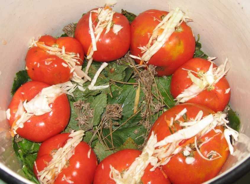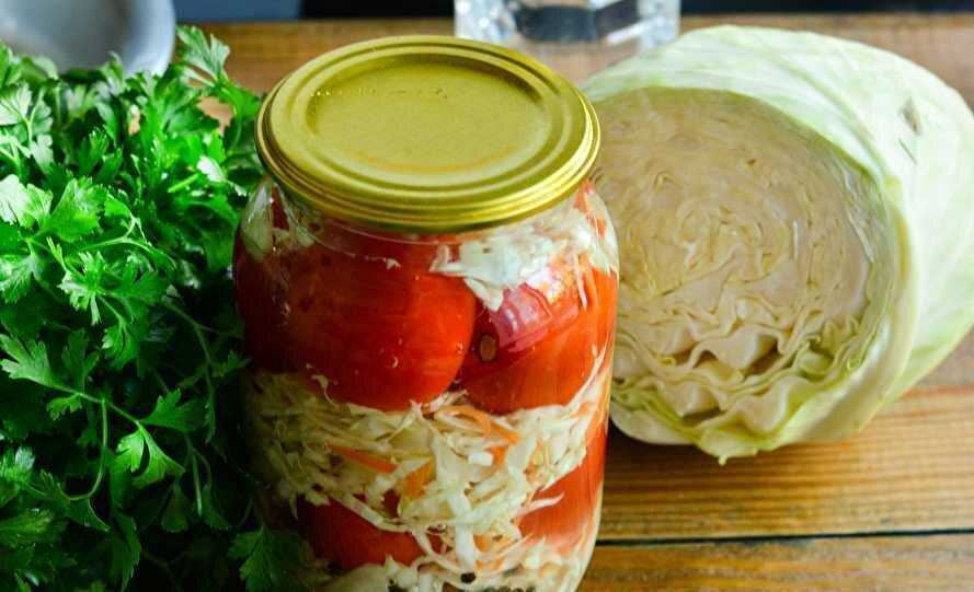 Вкусная и простая заготовка на зиму: консервированные помидоры с капустой