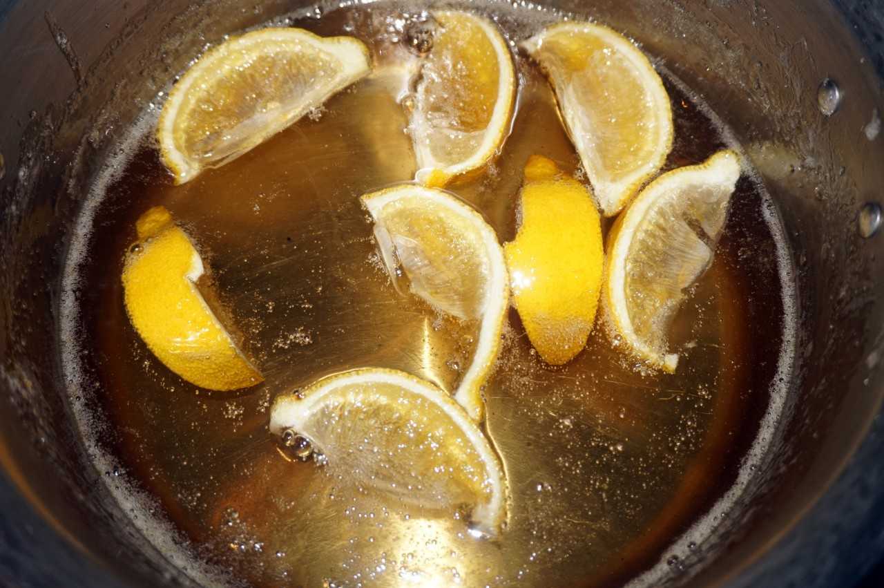 - Примерно за 5 минут до готовности десерта введите в него лимонку, тщательно вымешайте, чтобы она полностью растворилась, и снимайте сласть с плиты.