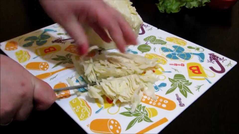 Ромэн промойте под проточной водой, промокните салфетками, сверните трубочкой и нашинкуйте.