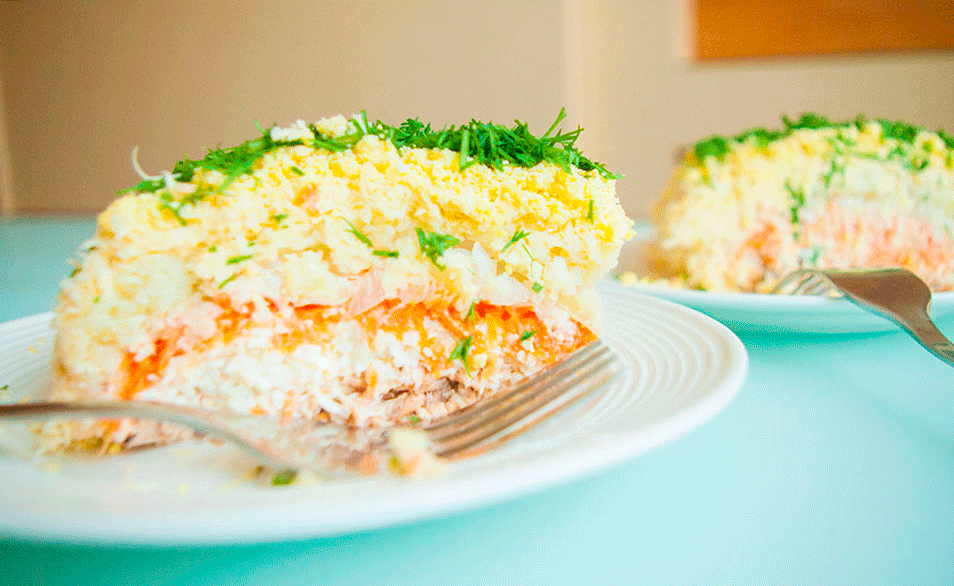 Рецепт салата Мимоза с горбушей — классический рецепт
