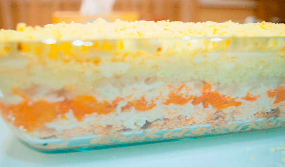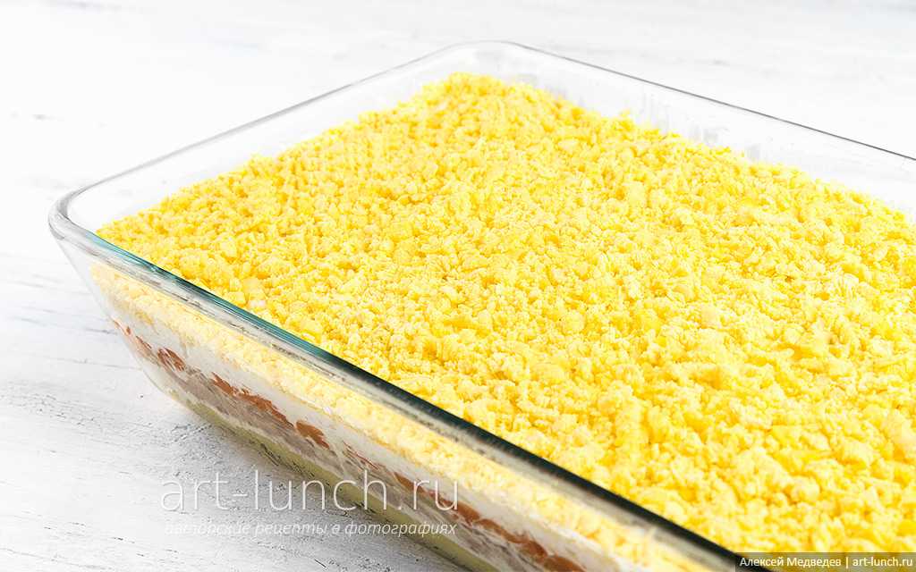 Как чередовать слои в салате Мимоза