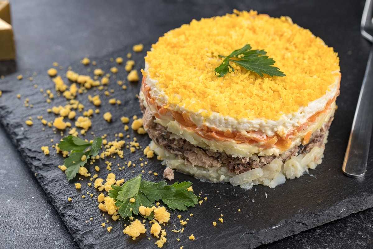 Как сделать салат Мимоза слоями с картошкой