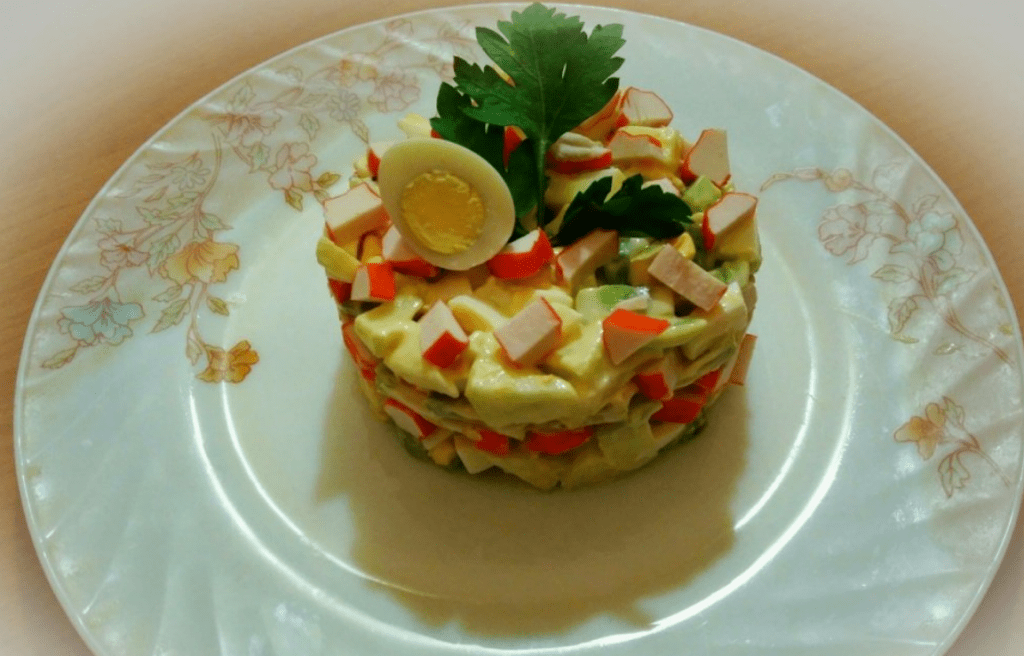 Салат с мясом краба — настоящий деликатес, излюбленная пища гурманов по всему свету. Нежный, изысканный вкус крабового мяса не оставит никого равнодушным, а в сочетании с другими продуктами раскроется полностью.