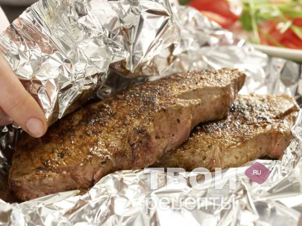 Заверните готовое мясо в фольгу и дайте ему немного так полежать.