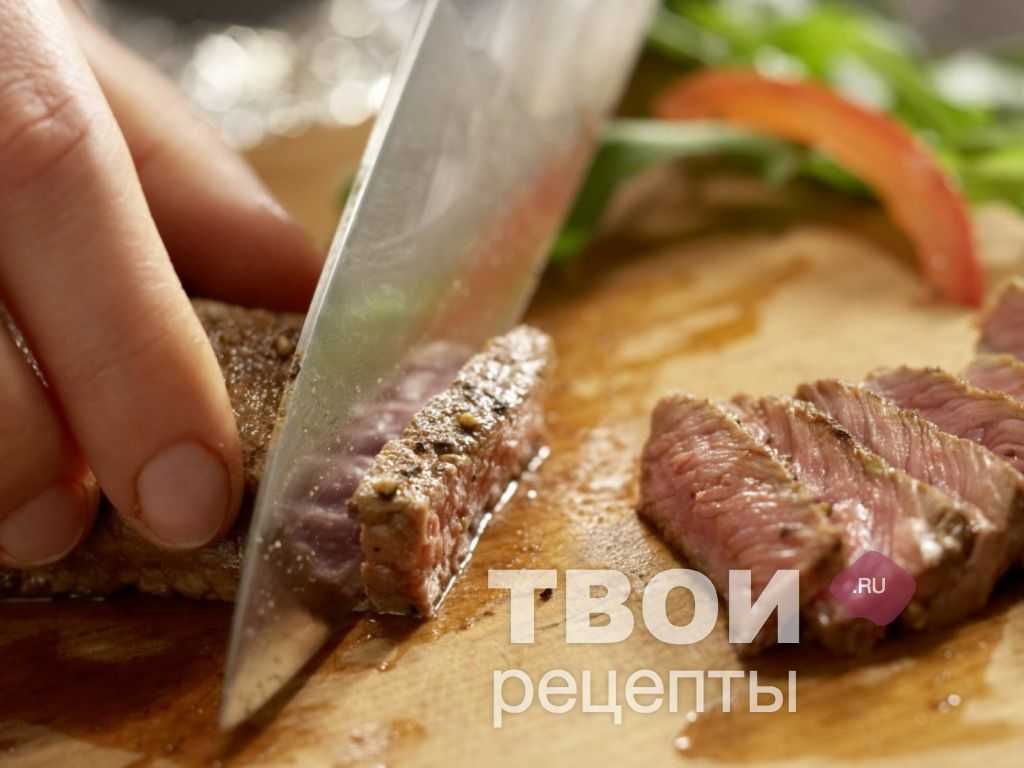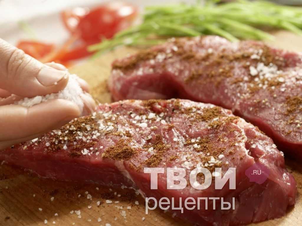 Мясо приправить солью и перцем. Обжарить с каждой стороны по 3-4 минуты.