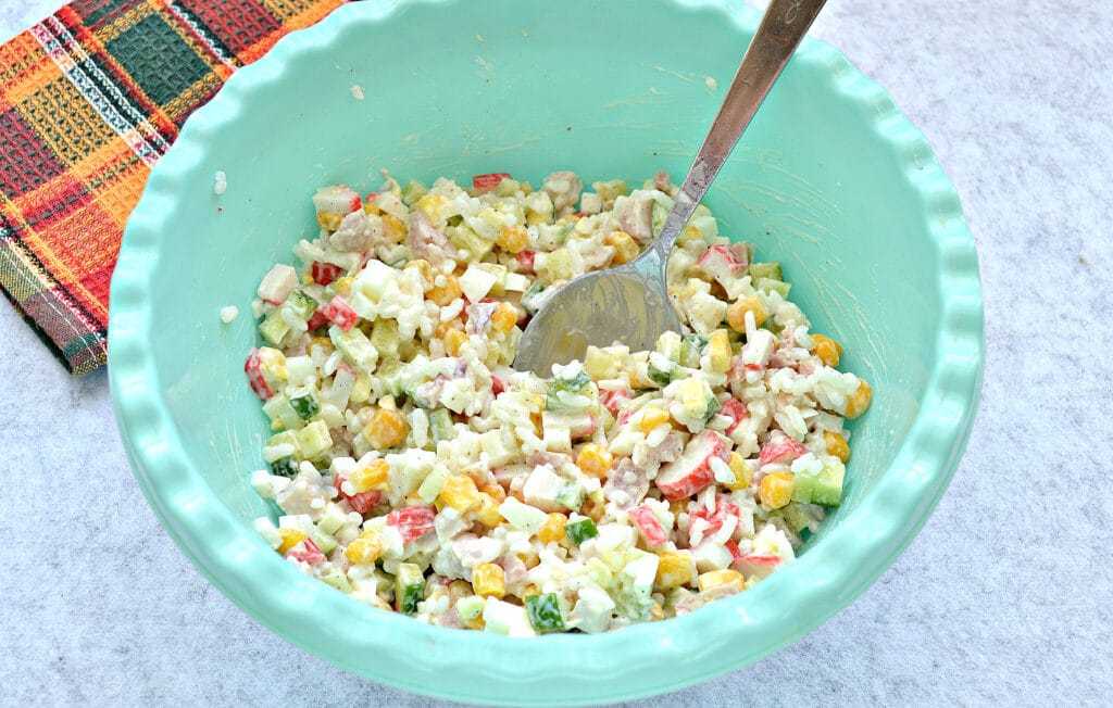 Аппетитный салат с рисом, крабовыми палочками и огурцом — пошаговые рецепты с фото и видео