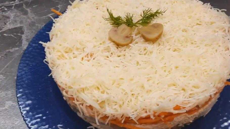 Салат Мужские слезы с курицей, грибами и корейской морковью