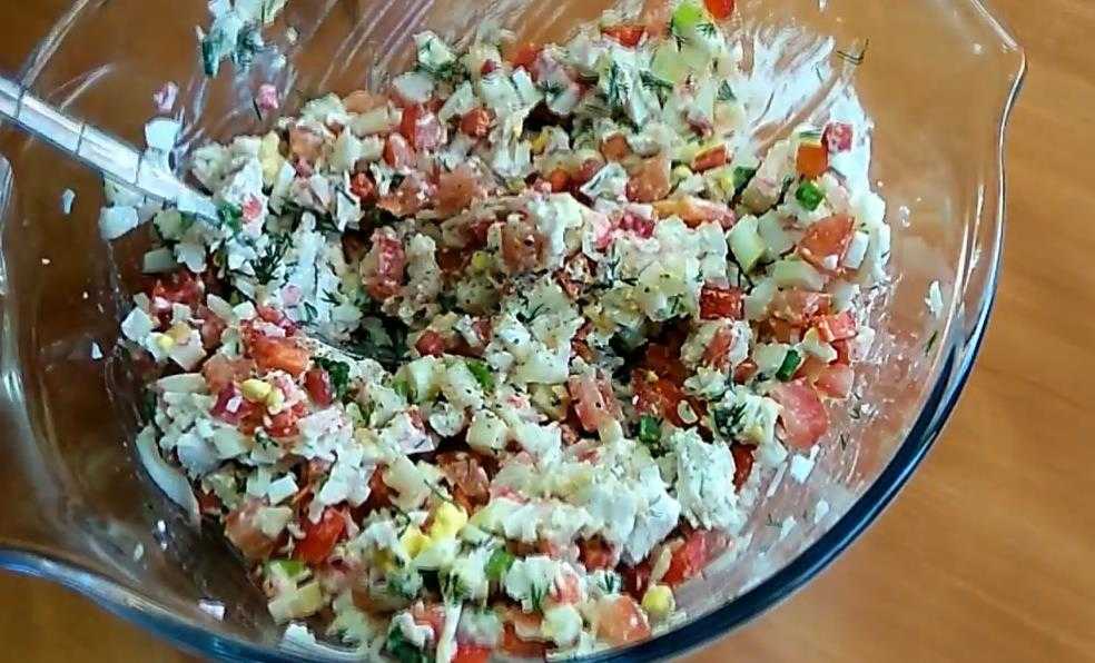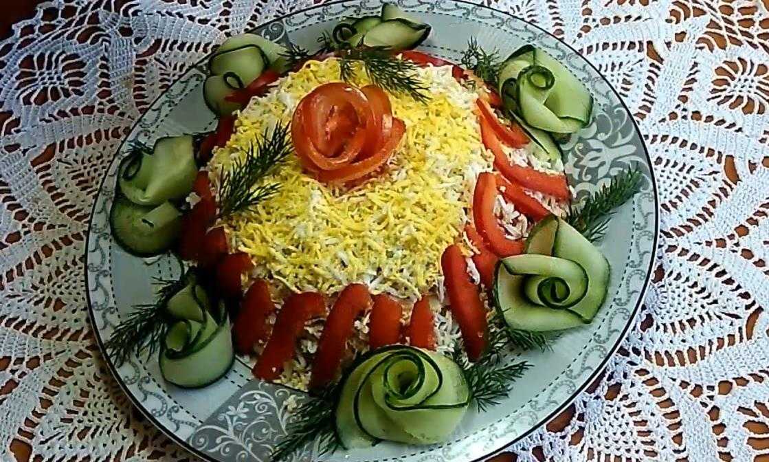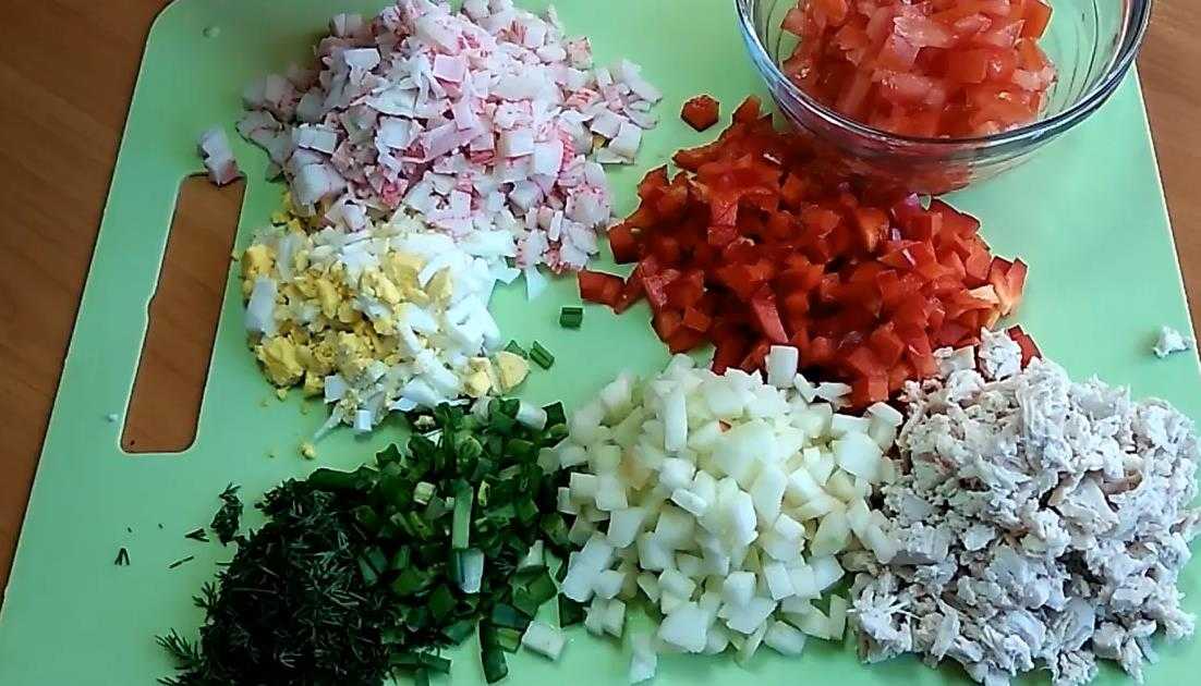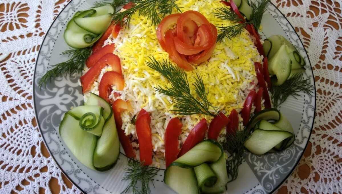 Салат Клеопатра с курицей, помидорами и крабовыми палочками