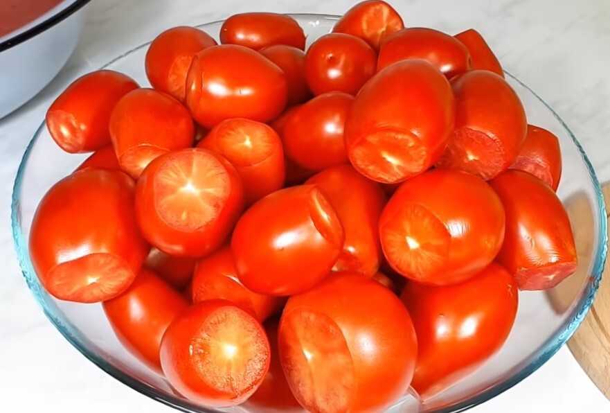 4. У помидоров, которые будут закладываться в банку, срезаем кончик — так получится вкуснее.