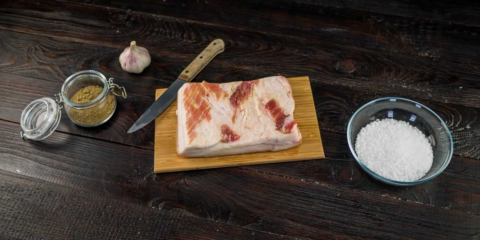 Для этого потребуется приобрести сало молодых свиней, отчего при покупке следует обращать внимание на то, чтобы сало не было слишком толстым. Нежность готового продукта достигается по следующему показателю – чем тоньше шкурка, тем мягче в итоге получится сало, которое будет таять во рту