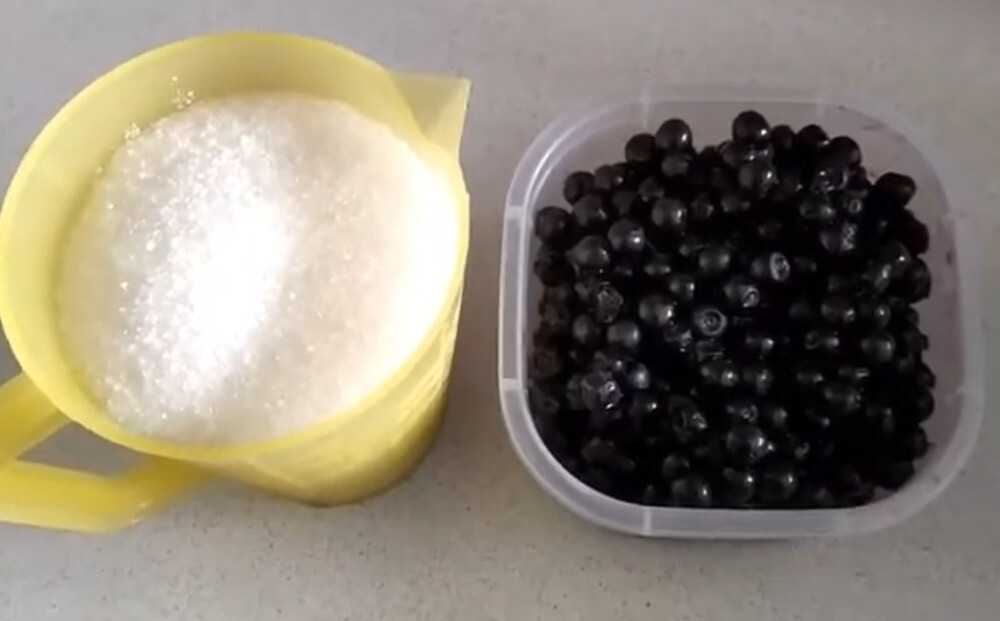 Лакомство по этому рецепту получается с характерным кисло-сладким, но совершенно не приторным вкусом. Из чего же готовится такое вкусное варенье? Из черники, сахара и воды. Да, это действительно всё, что нам нужно.