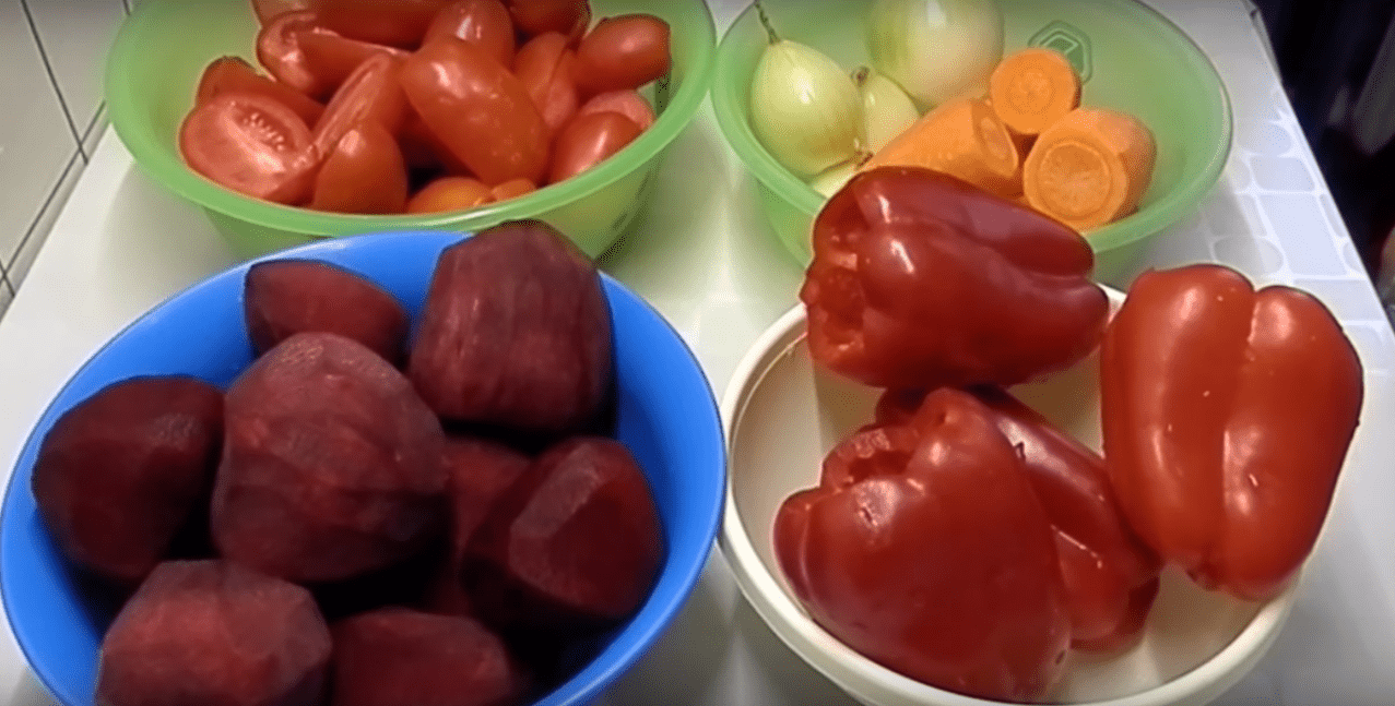 Совет!Если вы любите кисловатый вкус борща, то к необходимым можете добавить еще и немного уксуса, который нужно будет добавить в банки перед закаткой. Однако если вы любите сладковатый вкус супа, для заправки для борща на зиму будет достаточно взять спелые помидоры или томатную пасту. Также и сладкий болгарский перец.