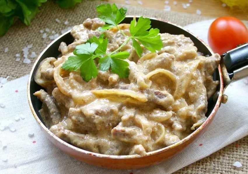 Рецепт бефстроганов из свинины с подливкой на сливках с томатом