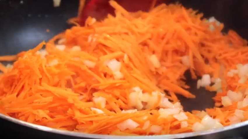 2. Морковь очистите, натрите на крупной терке. Добавьте к луку и жарьте пока не станет мягкой.