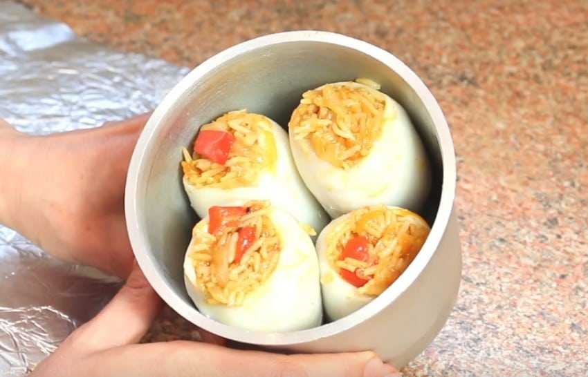 Фаршируем кальмары яйцом, грибами и сыром