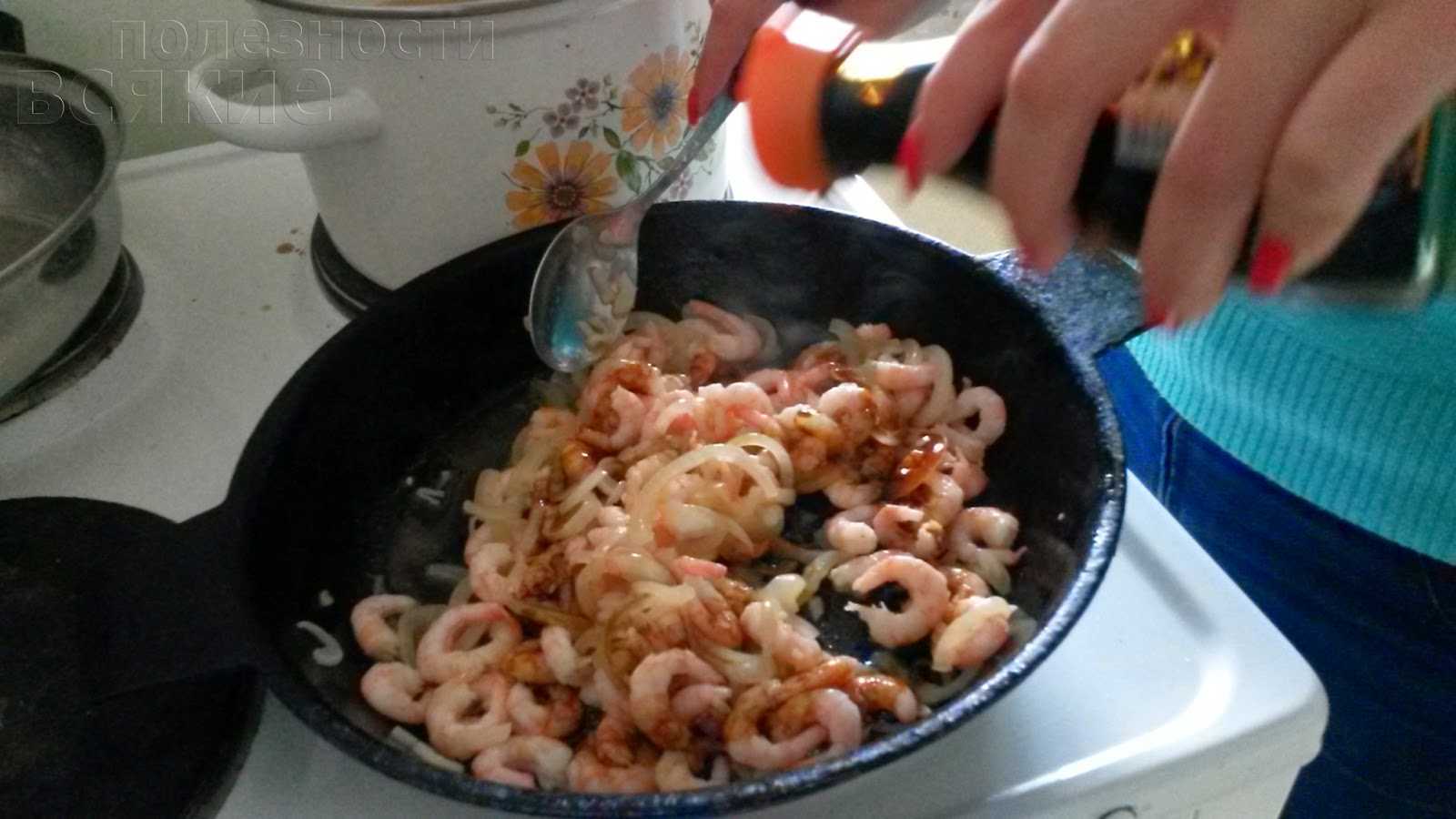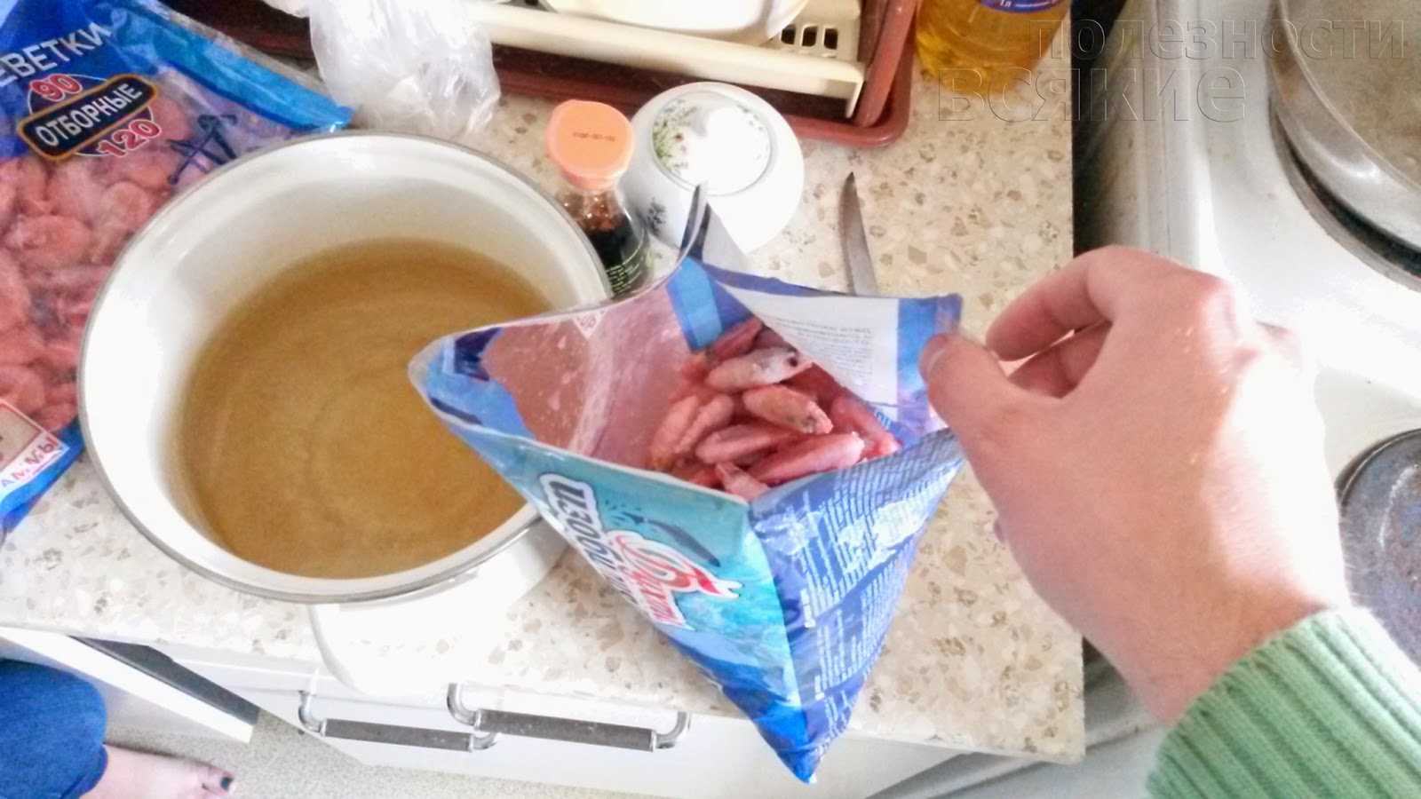 Процедура длится максимум 5 минут, ибо креветки размораживаются быстро, потому как они маленькие.