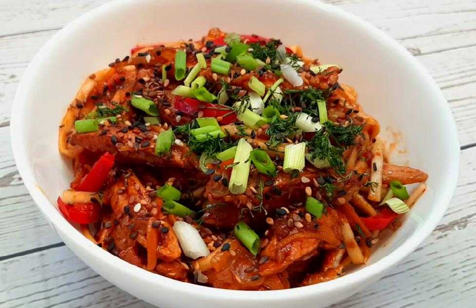 Салат с фунчозой по-корейски в домашних условиях с курицей и овощами