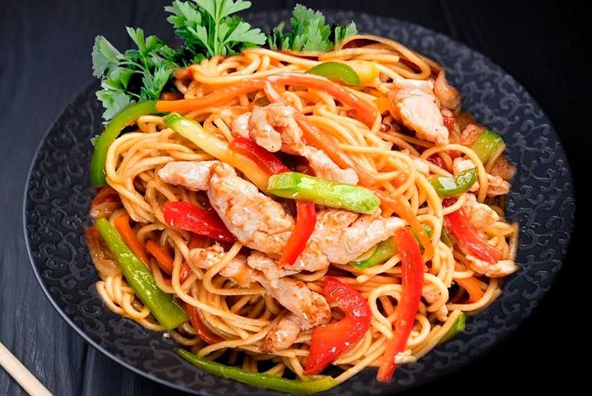 Рецепт фунчозы с курицей и болгарским перцем — горячее блюдо