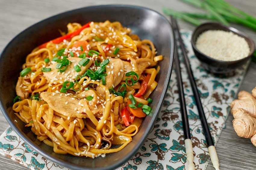 - Лапшу, которую предпочитаете: яичную, рисовую или пшеничную. Приготовьте таким образом, чтобы она была аль-денте, нежной и готовой к сочетанию с куриной грудкой.