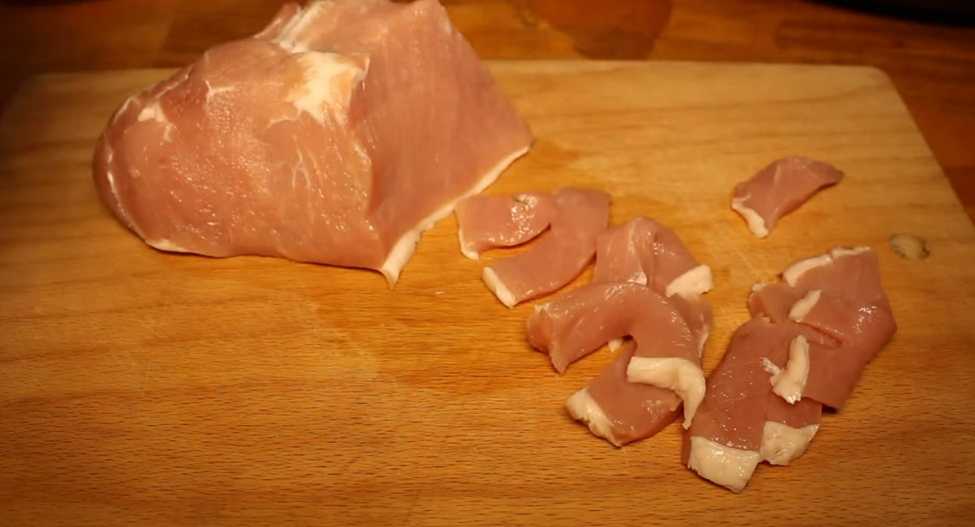1. Мясо обмойте и порежьте на кусочки размером примерно 1,5х1,5см.