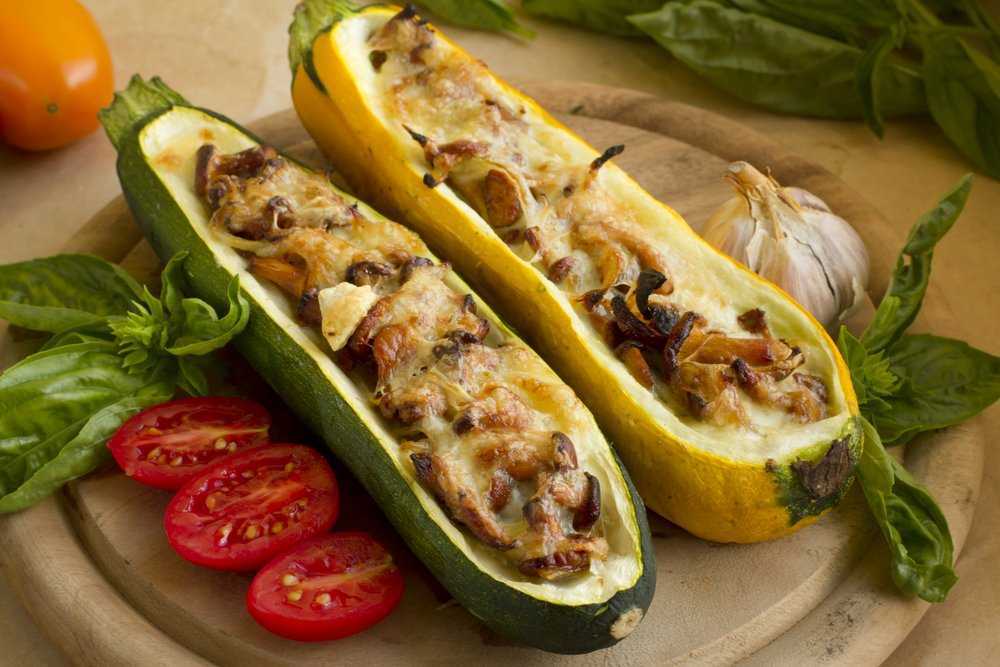 Кабачки, фаршированные сыром, овощами — рецепт: