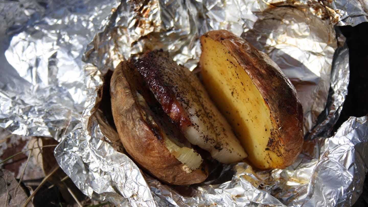 - В ином случае можете завернуть несколько картофелин с салом в несколько слоев фольги и закопать в углях. Готовьте также 15 минут. Картошка в углях в фольге замечательное, ароматное и сытное блюдо.