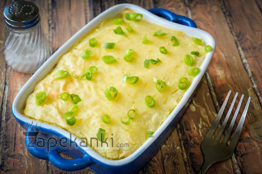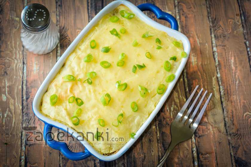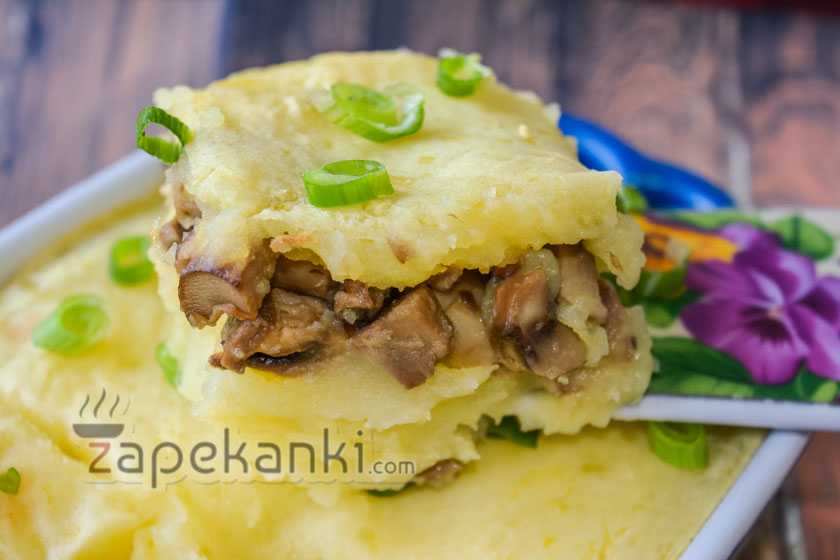 Картофельная запеканка с грибами в духовке из пюре