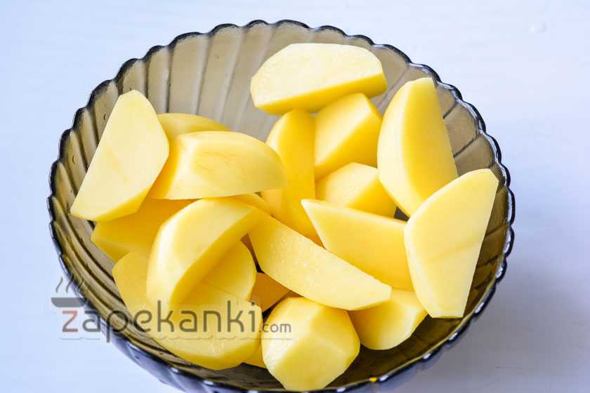- Картошку почистите, промойте, обсушите и нарежьте тонкими кружочками.