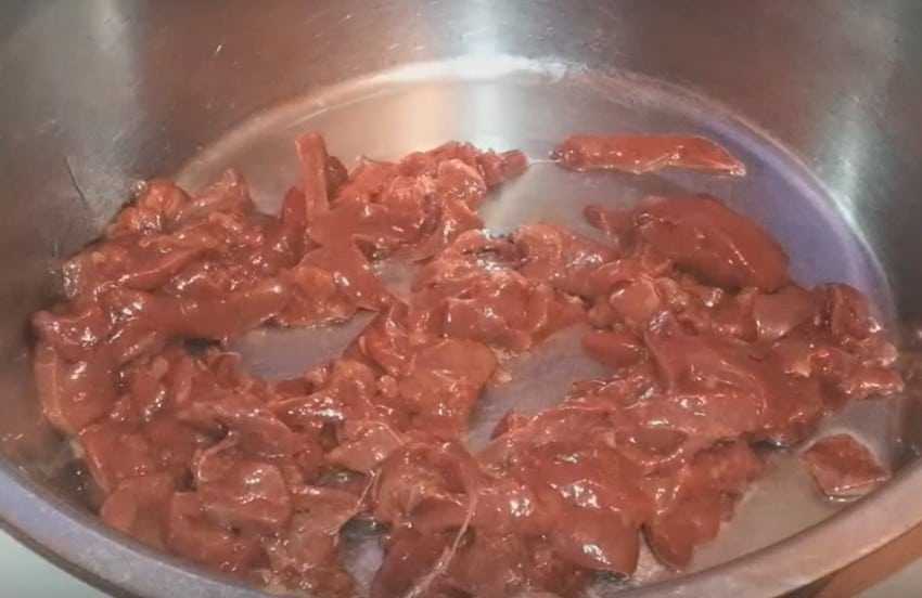 1. Промойте печень под проточной водой и нарежьте как можно мельче – тонкими полосками или кубиками.