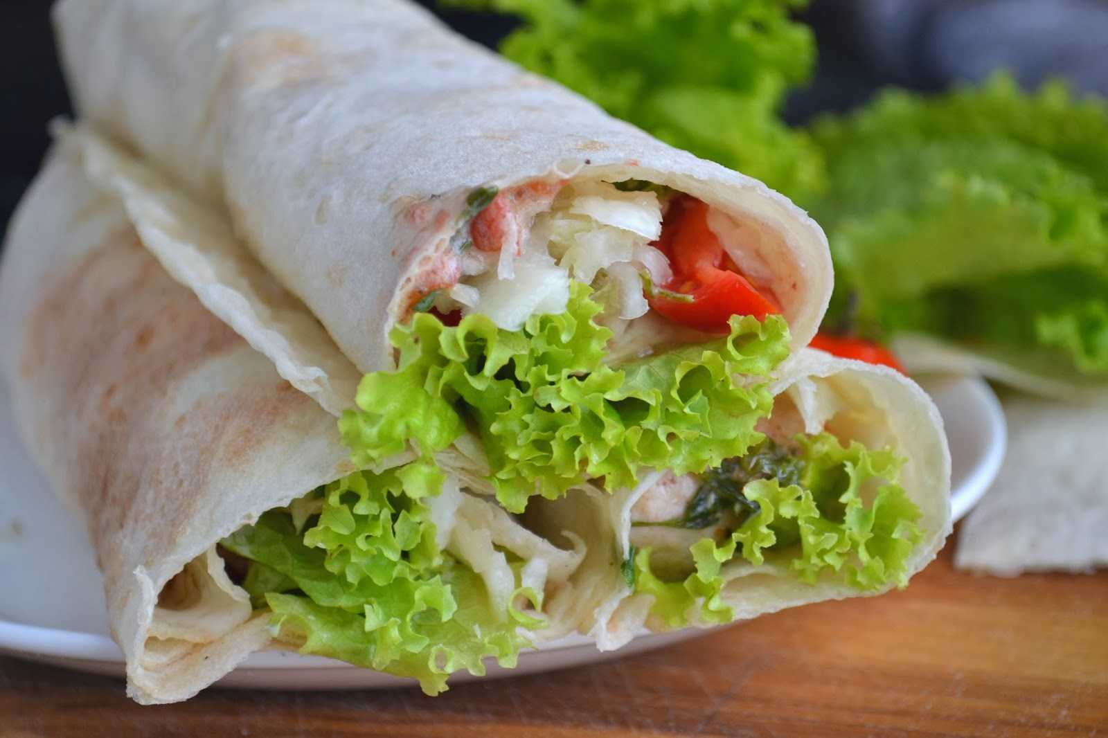 Берем лаваш, выкладываем на него листья салата, сверху кладем курицу, помидоры и авокадо. Теперь все это как следует сворачиваем в рулет и можем лакомиться! Идеальная П П шаурма у вас в руках! При желании можно немного поджарить ее на гриле.