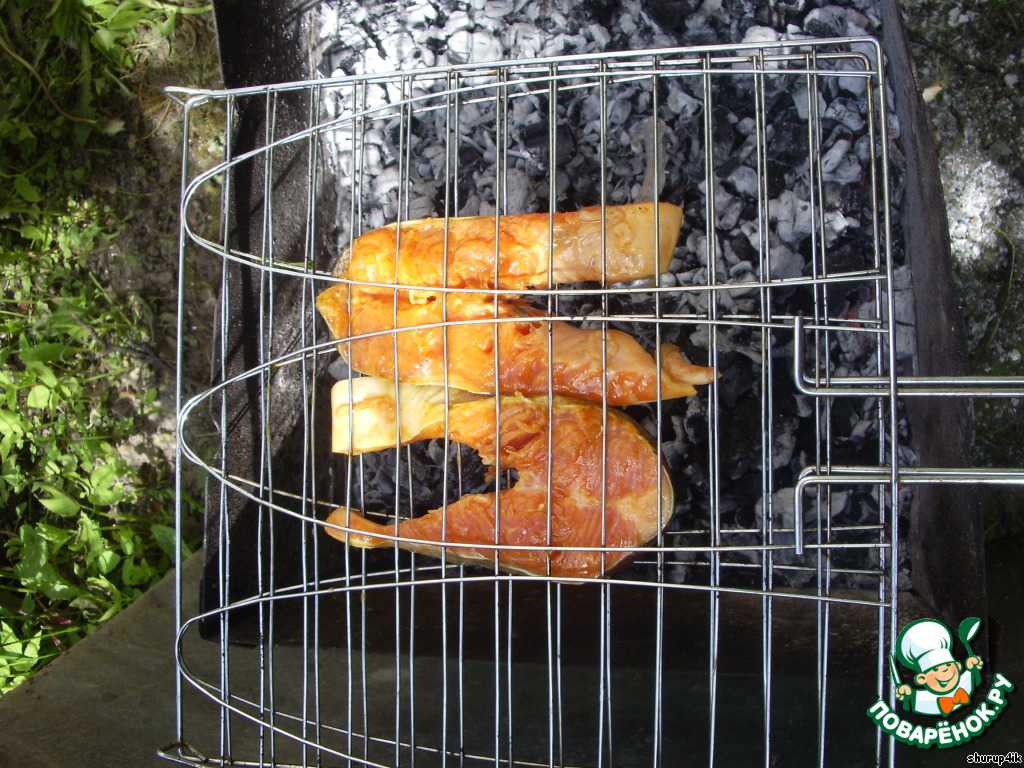 Рыбу выдерживают в составе не более 40 минут и отправляют на мангал.