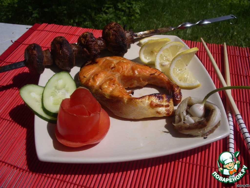 Рецепт 6: восточный шашлык из рыбы с грибами