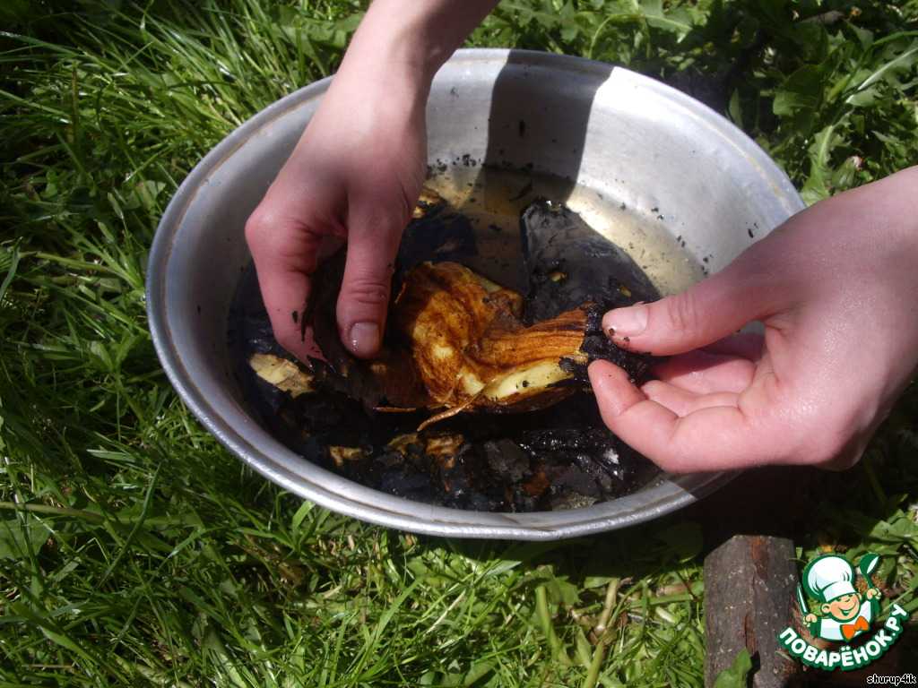 Баклажаны прямо из костра положить в холодную соленую воду.