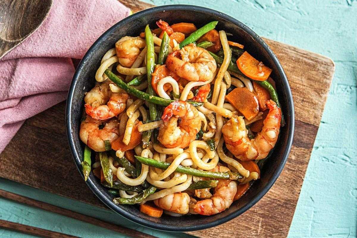 Креветки с овощами под соусом Терияки