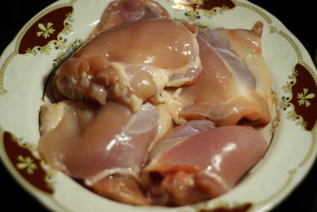 - Куриные бедра промываем водой, убираем мусор и перышки, если попадаются.