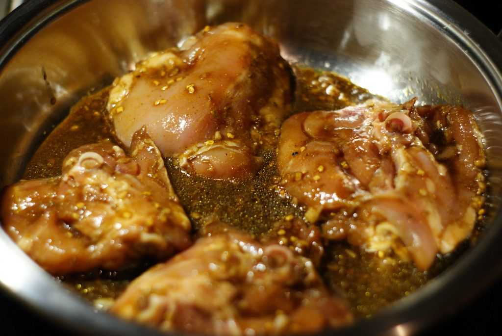 Во время мариновки курятина будет выделять мясной сок, поэтому нужно периодически вытаскивать ее из холодильника. После чего необходимо аккуратно перемешивать содержимое пакета, не развязывая при этом его. Благодаря таким манипуляциям, маринад будет равномерно проникать во все части бедрышек.